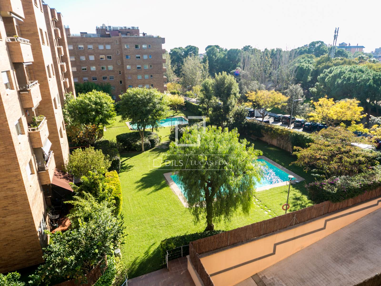 Vista sulla piscina e sulla città dal balcone principale