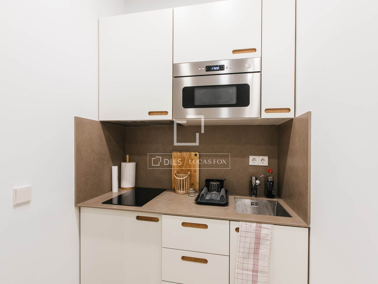 L'appartamento dispone di una camera da letto con letto matrimoniale, un bagno completo con doccia e un'elegante cucina a pianta aperta completamente attrezzata con elettrodomestici di alta gamma, tra cui frigorifero, forno, microonde, lavastoviglie e lavatrice-asciugatrice. Vanta inoltre un ampio spazio di stoccaggio che massimizza la metratura disponibile.