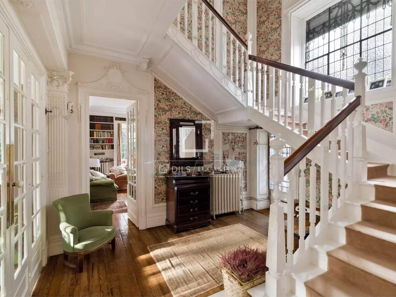 Entrando nella proprietà, sarete accolti da un maestoso atrio con una scala in legno bianco e un elegante corrimano. L'ingresso comprende ampi soggiorni, una sala da pranzo separata e diverse camere da letto luminose.