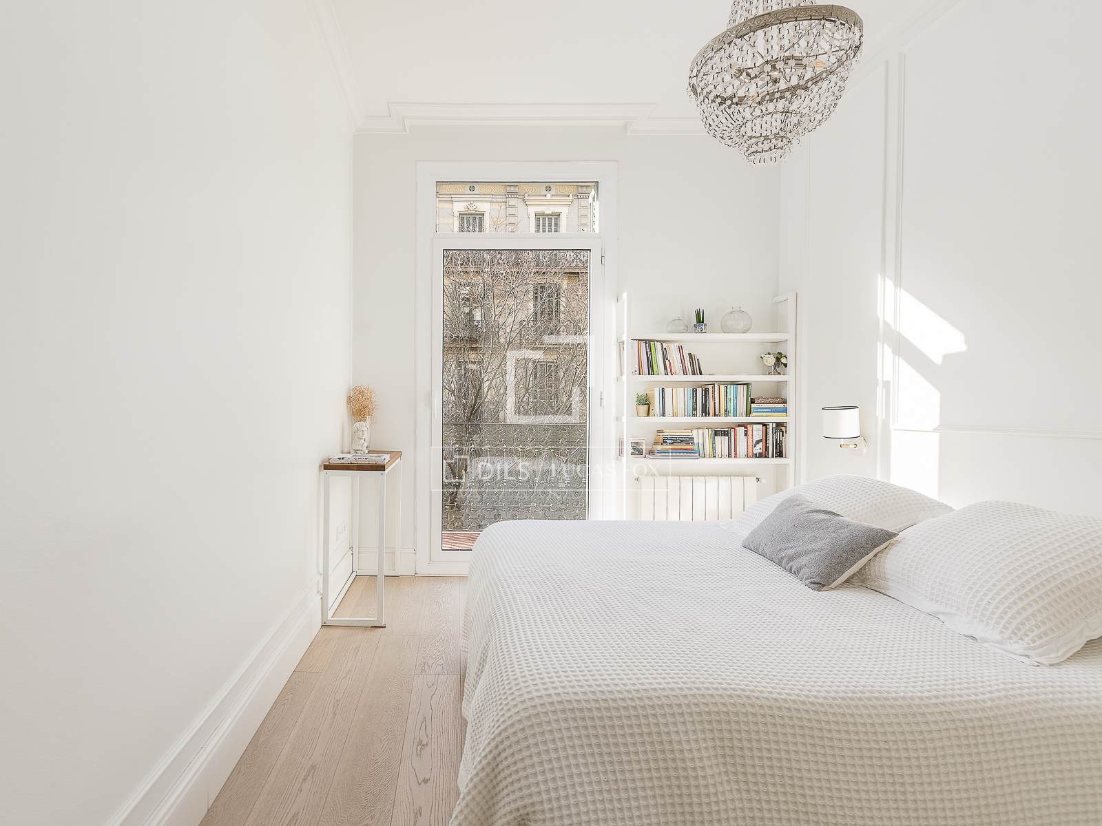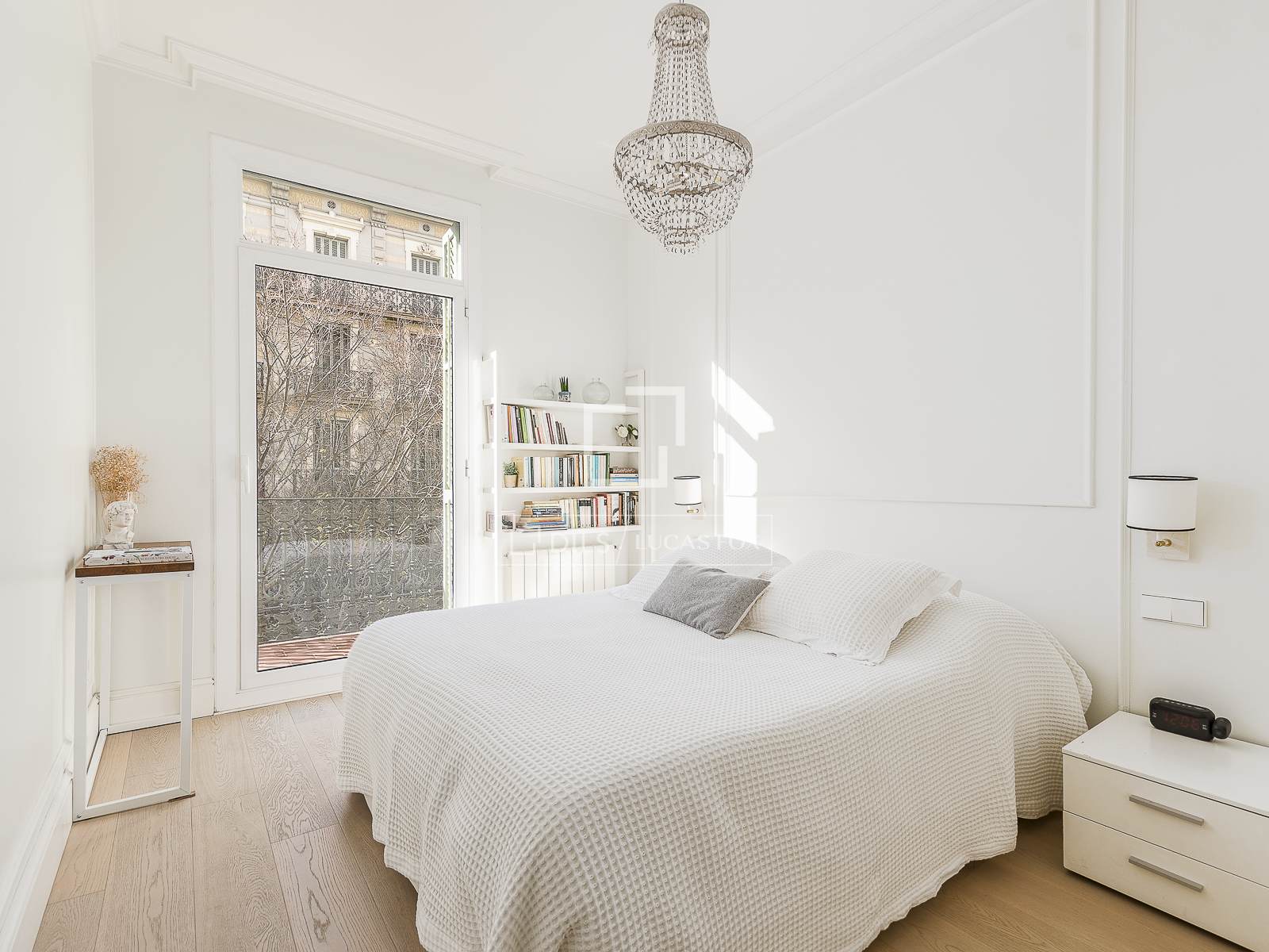 La zona notte comprende tre camere matrimoniali e uno studio. Le due camere da letto che si affacciano su Calle Bailén sono completamente esterne e hanno accesso diretto a un grazioso balcone tipico di un edificio modernista del 1900. Si distinguono per la loro spaziosità, i soffitti alti e un'estetica curata nei toni neutri che trasmette serenità e un senso di apertura.