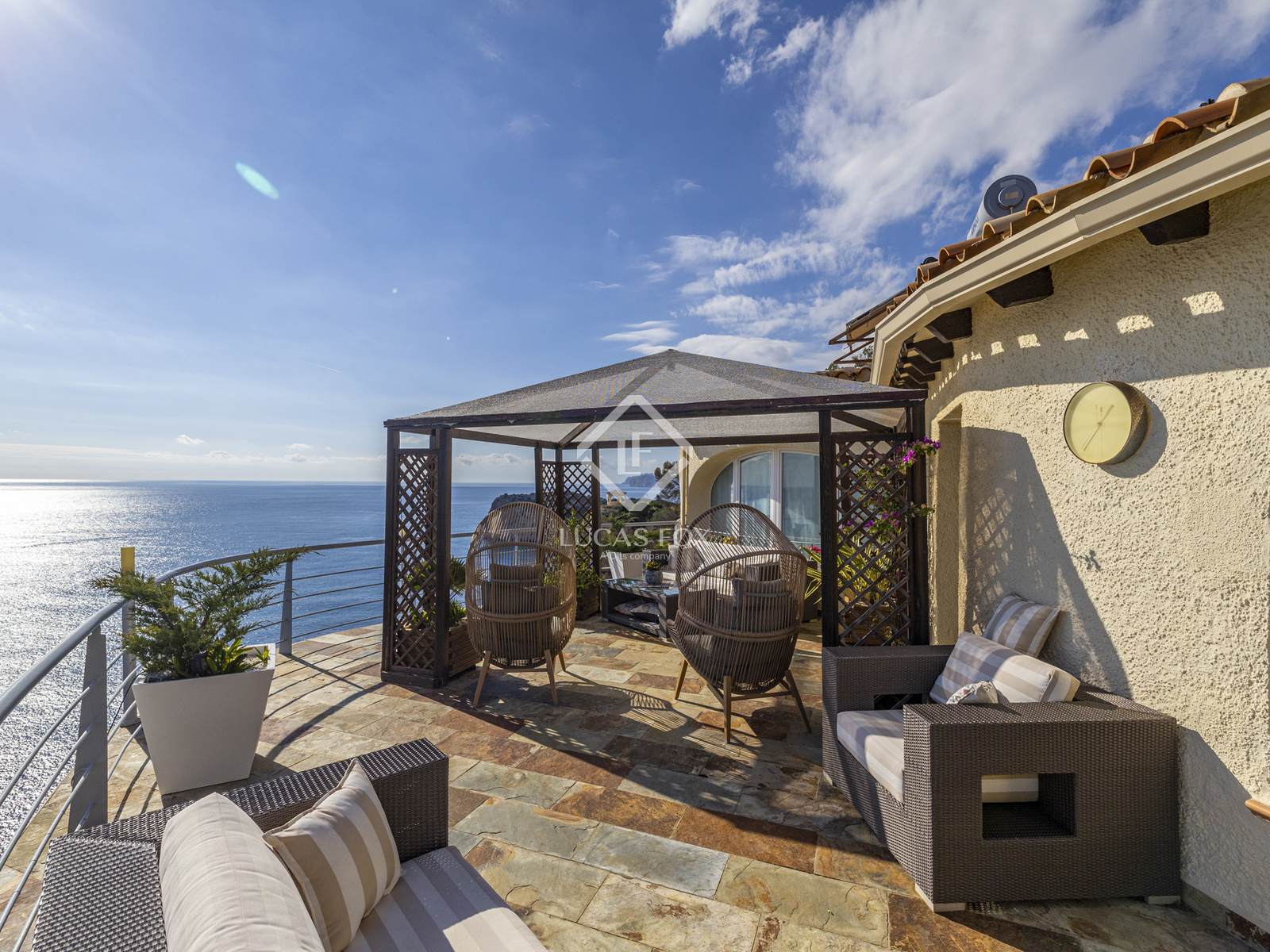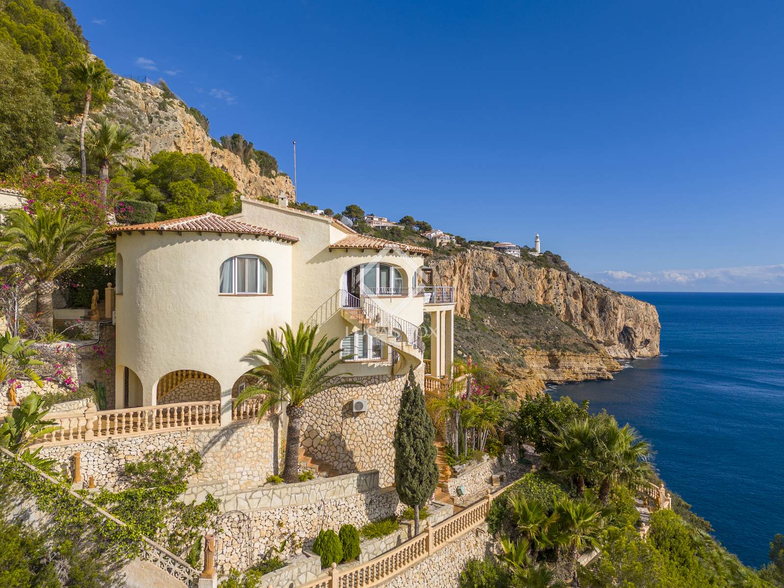 Questa magnifica proprietà fronte mare si trova in uno dei vicoli ciechi più esclusivi e tranquilli della zona, garantendo privacy, assenza di traffico e una vista panoramica mozzafiato sul mare. A cinque minuti di auto si trova un supermercato locale e in dieci minuti si raggiunge la spiaggia sabbiosa di Arenal a Jávea, con il suo lungomare ricco di ristoranti, bar e caffè.