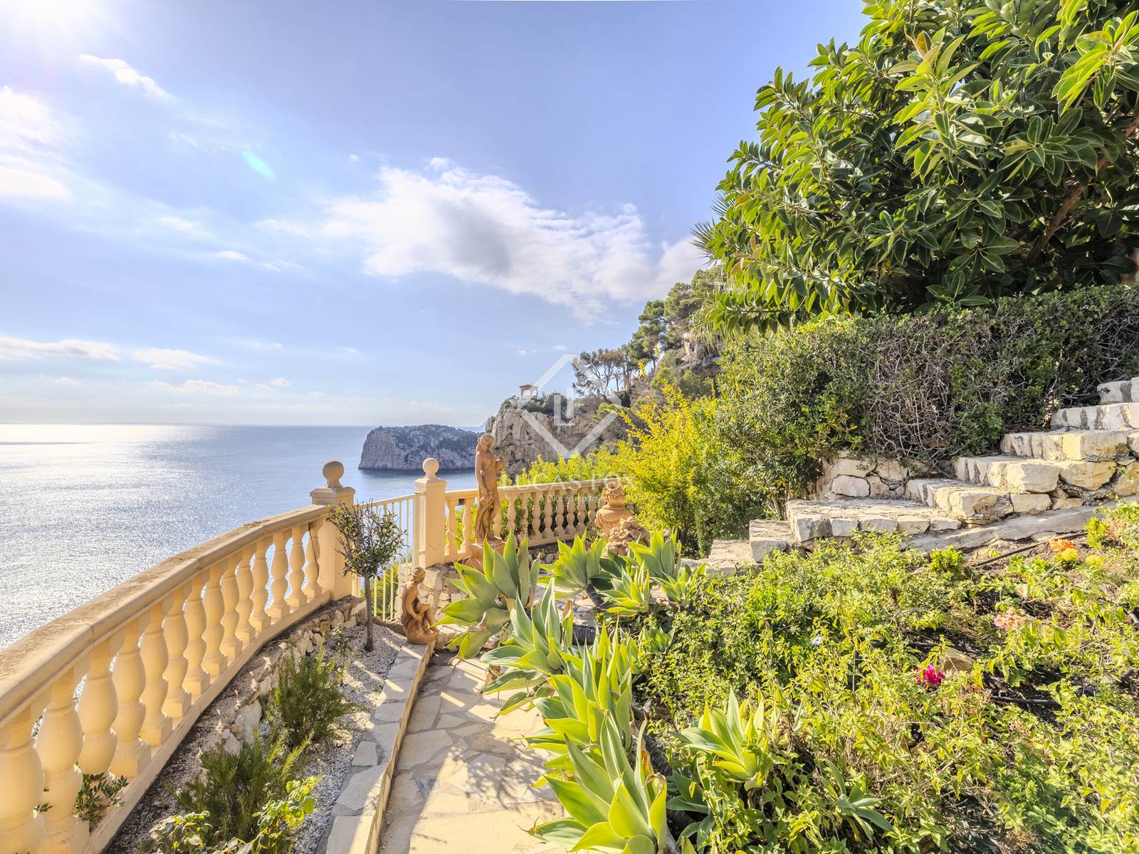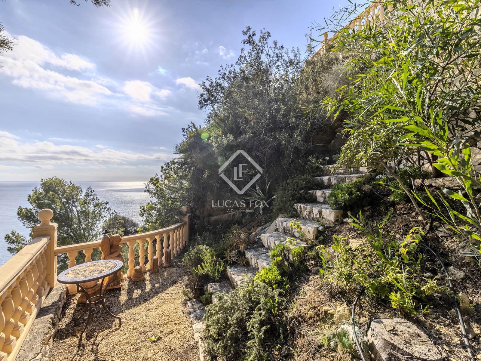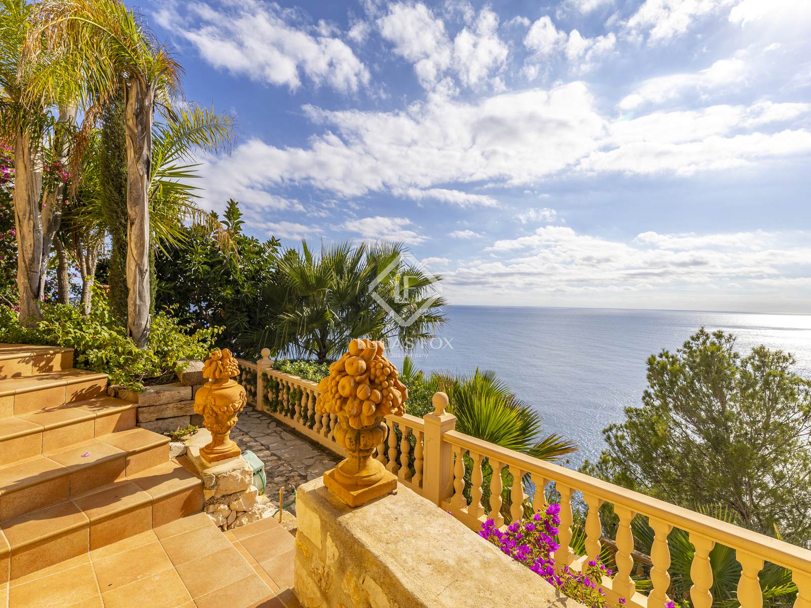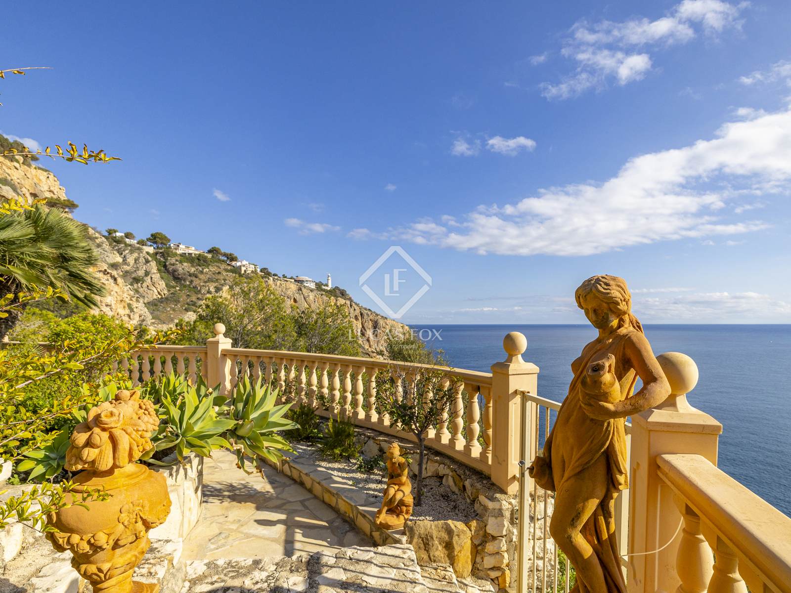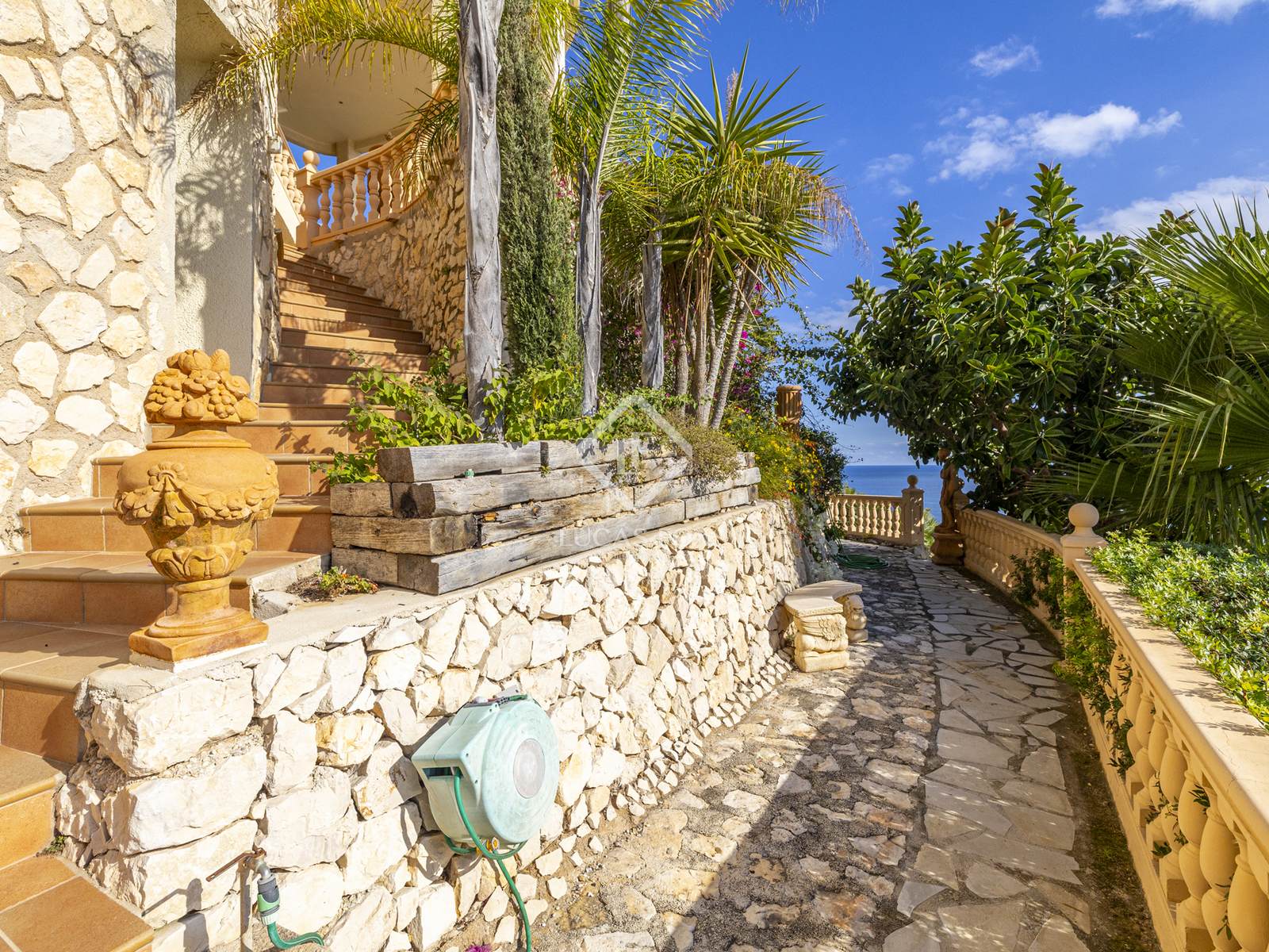 L'area esterna offre un giardino terrazzato con sistema di irrigazione, alte palme, siepi mature, piante mediterranee e splendidi fiori. Un'incantevole terrazza con barbecue è immersa nel verde lussureggiante e le diverse terrazze intorno alla casa offrono infinite possibilità per rilassarsi, divertirsi o semplicemente ammirare il panorama mozzafiato.