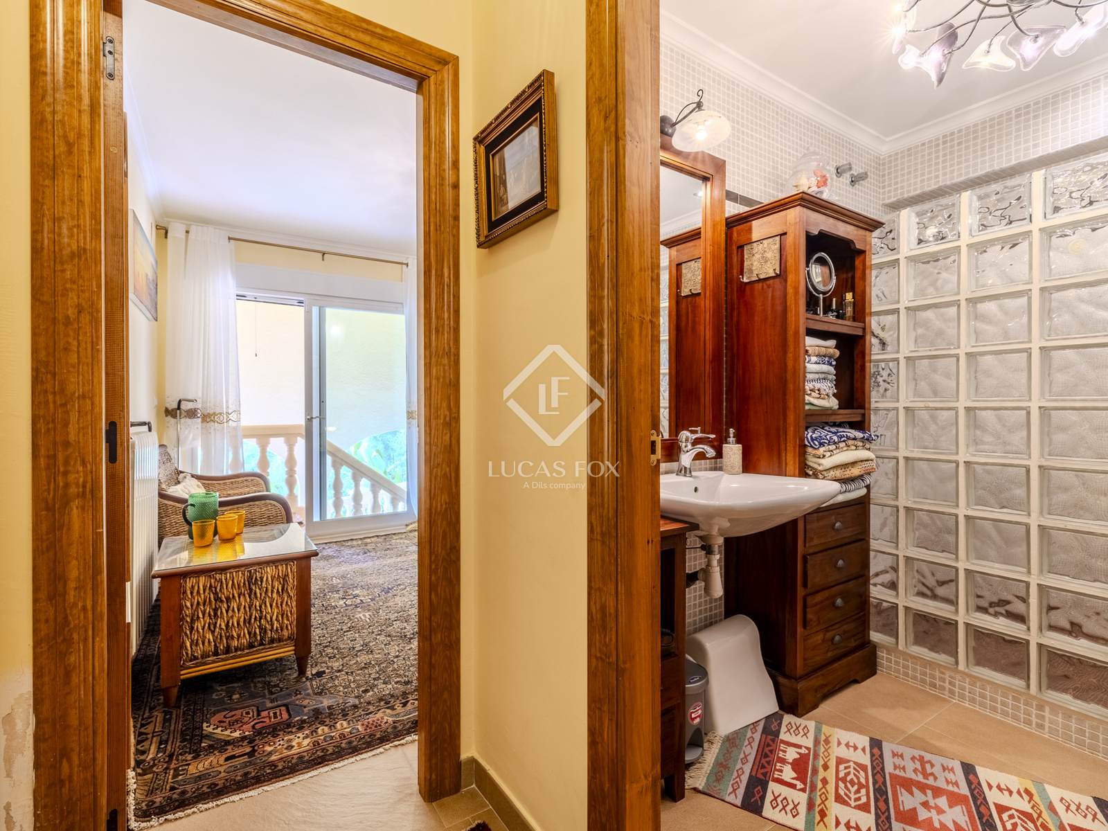 Questo piano principale ospita due camere matrimoniali con armadi a muro, una delle quali con vista mare, un bagno di famiglia e un bagno per gli ospiti con doccia. Una scala a chiocciola conduce al piano inferiore, dove si trovano altre due camere matrimoniali con armadi a muro e un bagno. Una delle camere offre accesso diretto alla terrazza e al giardino, ideale per ospiti o famiglie numerose.