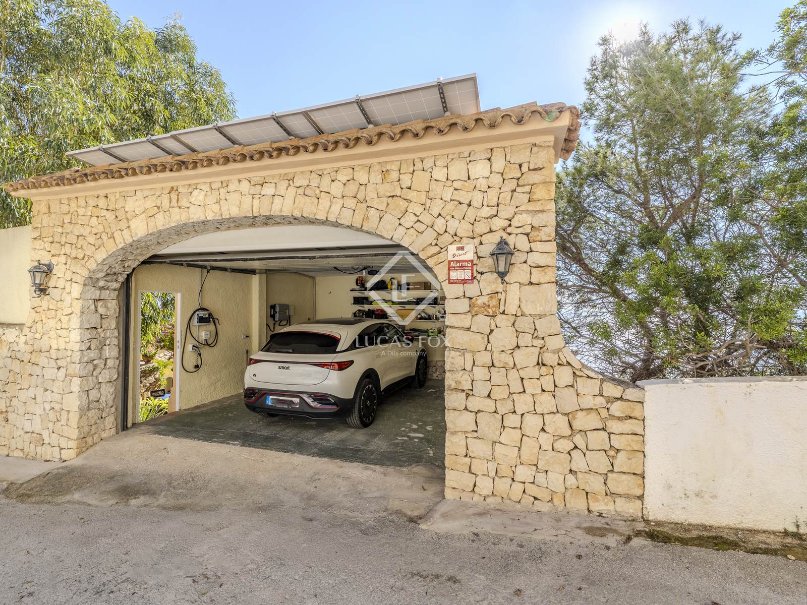 Ulteriori caratteristiche includono pannelli solari per ridurre i costi energetici, un caricabatterie per auto elettriche, aria condizionata, riscaldamento centralizzato a gas tramite radiatori e un ripostiglio.