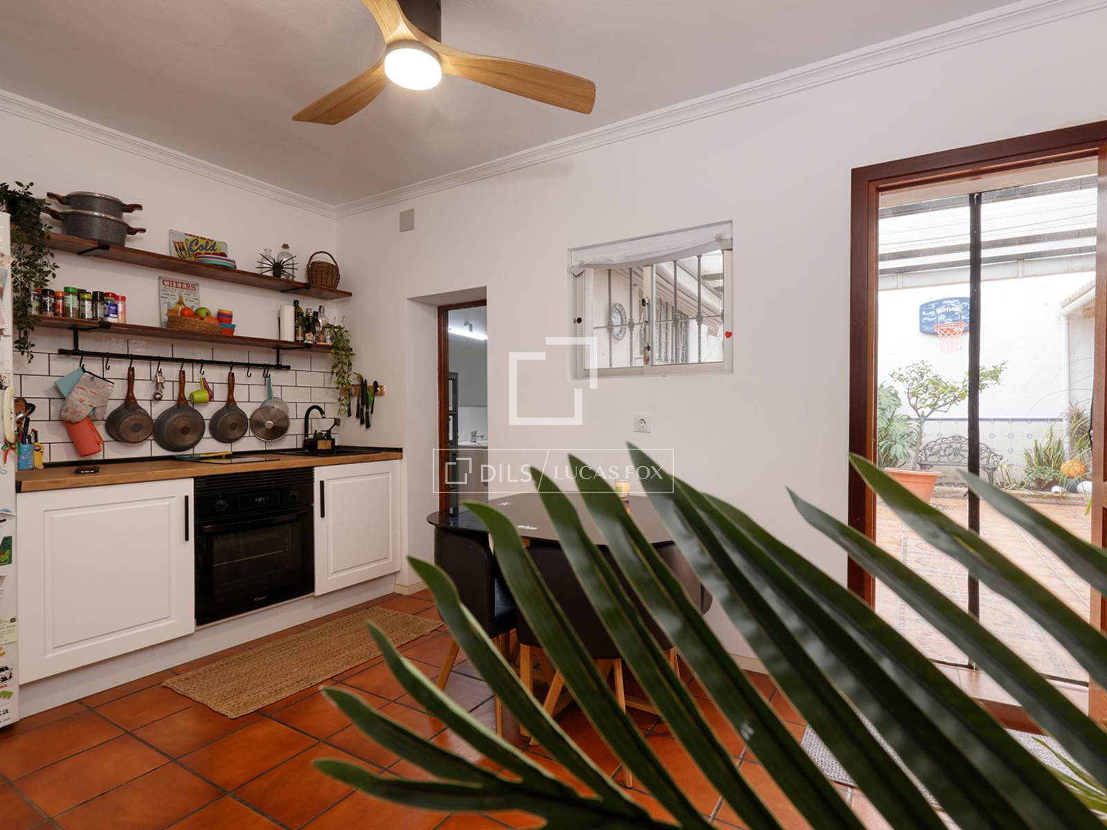 Proseguendo verso l'interno della casa, la cucina e la zona pranzo si collegano direttamente a un ampio patio privato. Quest'area esterna comprende una cucina esterna, una zona pranzo ombreggiata e un pratico ripostiglio, creando un'estensione funzionale degli interni. Dalla cucina si accede a un bagno completo e a una seconda camera da letto. Il patio conduce anche a un'ulteriore stanza multiuso, attualmente adibita a sala giochi, che può essere utilizzata come studio, studiolo o quarta camera da letto a seconda delle esigenze.