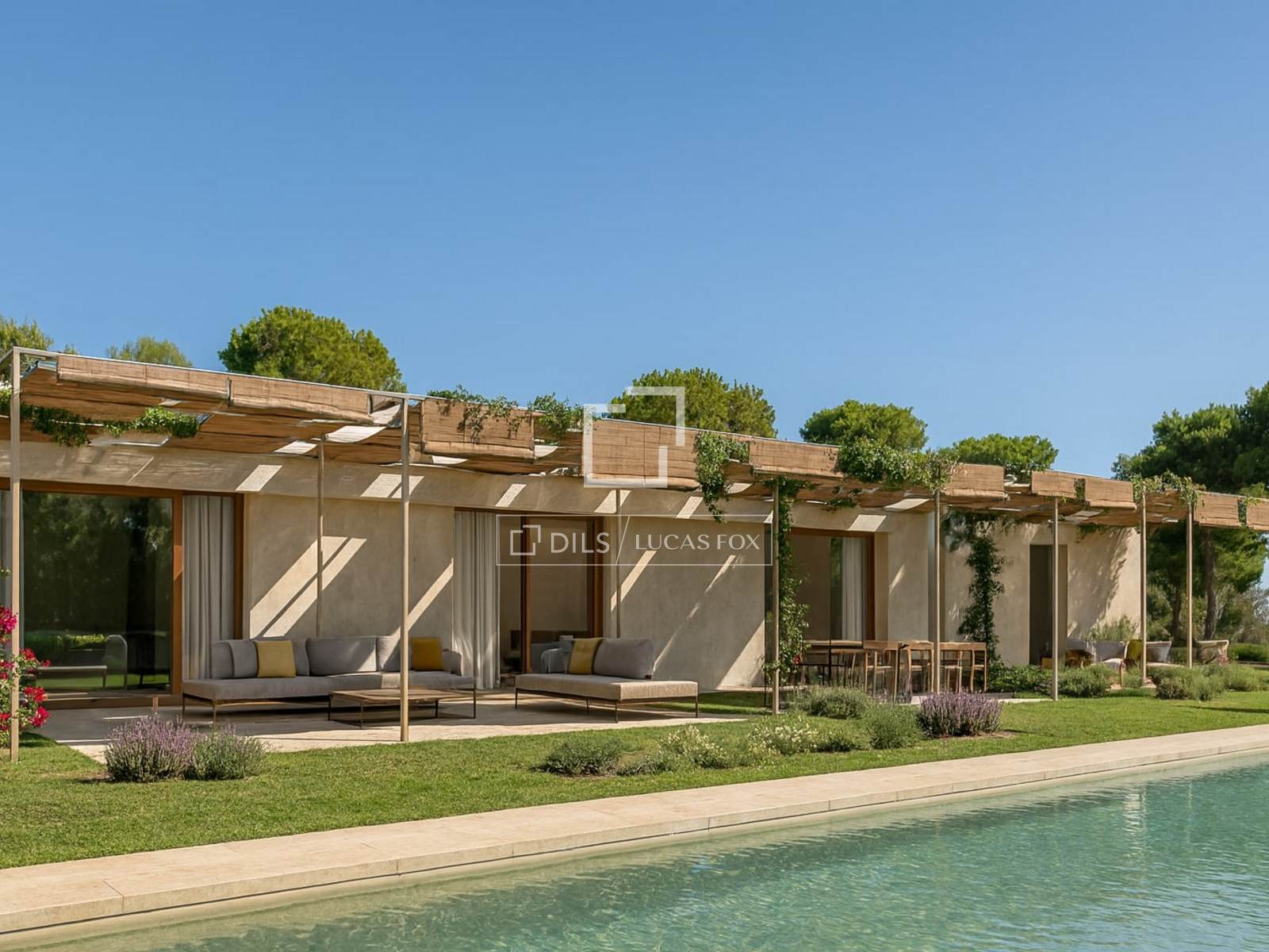 Gli ampi spazi esterni sono dotati di terrazze, una zona relax e una magnifica piscina di 81 m², perfetta per godersi il sole di Ibiza.