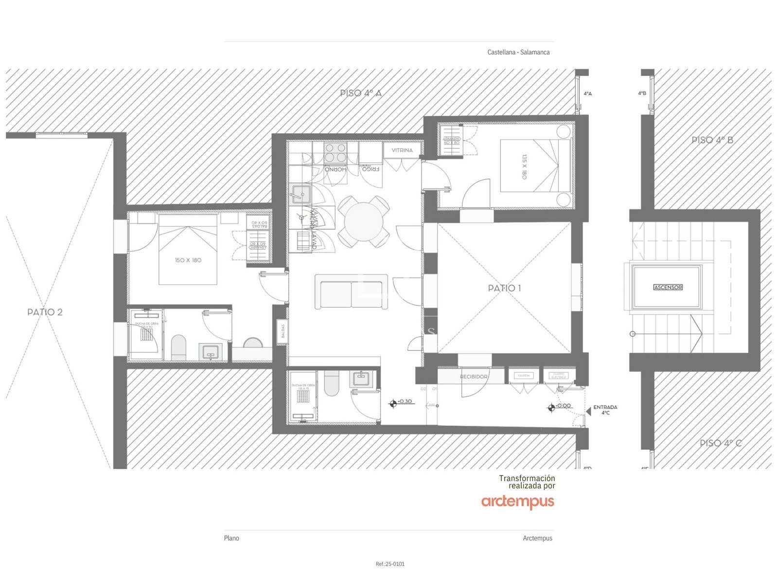 L'appartamento si trova al quarto piano (interno) di un edificio con ascensore e ha una superficie di 80 m². È stato completamente ristrutturato dal rinomato studio di architettura Arctempus, offrendo un design contemporaneo e funzionale. L'appartamento dispone di due camere matrimoniali, due bagni completi e una zona giorno open space ben progettata, composta da soggiorno, sala da pranzo e cucina completamente attrezzata.