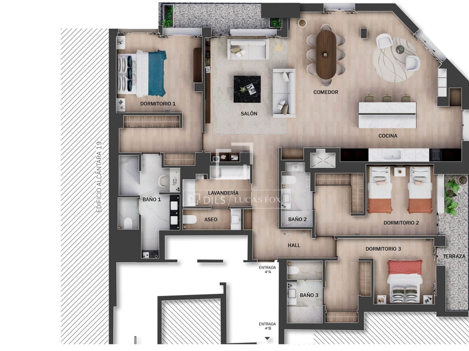 Elegante appartamento di design di 234 m² completamente ristrutturato con 3 camere da letto, 3 bagni e terrazza in vendita nell'esclusivo quartiere Goya, nel distretto di Salamanca a Madrid.