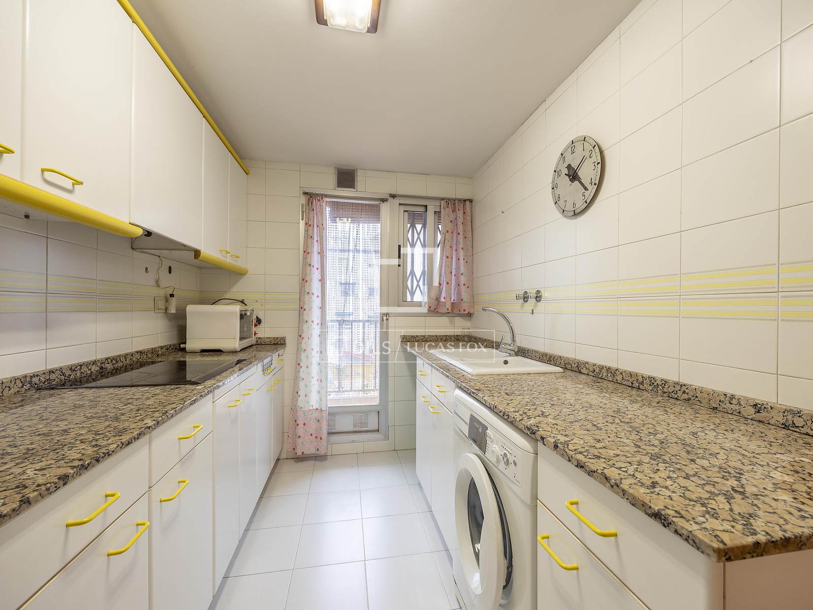 Entrando nell'appartamento tramite ascensore, si viene accolti da un imponente ingresso di circa 10 m² che organizza elegantemente la disposizione degli spazi. A sinistra si trova una camera da letto separata con vista sul luminoso patio esterno. A destra, l'ingresso conduce a un ampio soggiorno-pranzo con accesso diretto al balcone principale. La zona notte comprende tre camere da letto (originariamente quattro), la più importante delle quali è la suite padronale. La cucina dispone di una dispensa adiacente e di accesso a un secondo balcone di servizio con zona lavanderia, mentre i due bagni sono posizionati strategicamente per servire l'intero appartamento.